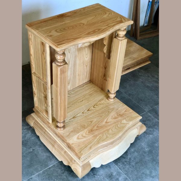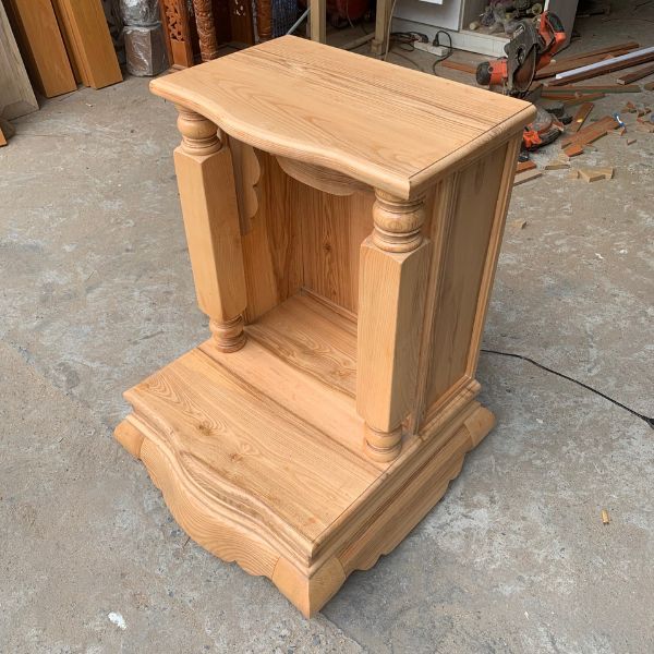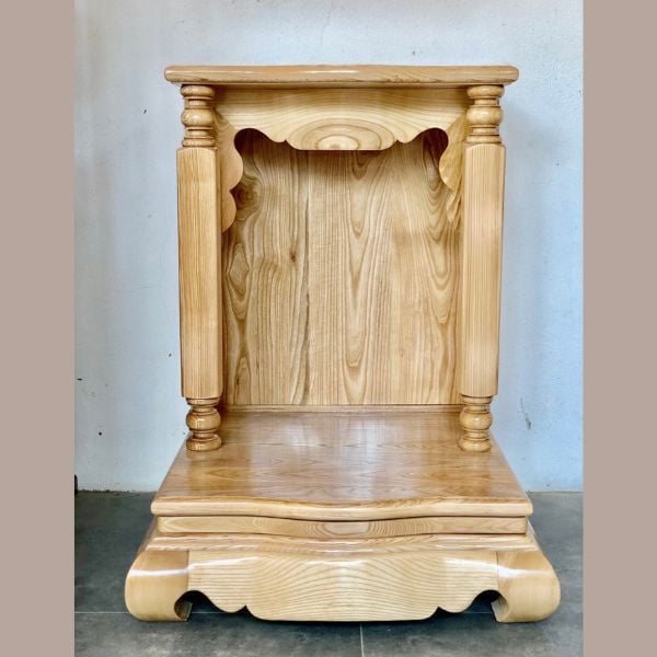 -Bàn thờ ông địa thần tài được làm từ nhiều chất liệu khác nhau như gỗ xoan đào, gỗ sồi hoặc căm xe