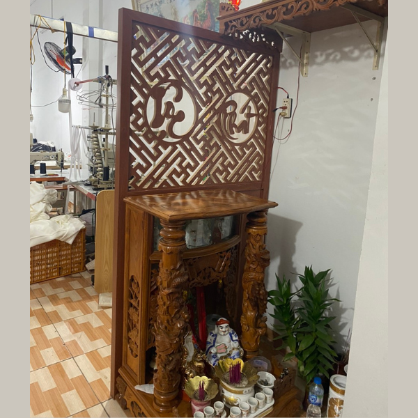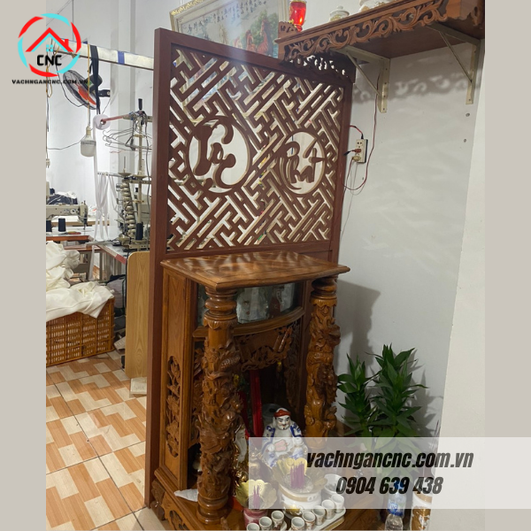 Che chắn và bảo vệ: Vách ngăn gỗ trang trí cũng có tác dụng che chắn và bảo vệ các vật phẩm linh thiêng, tôn giáo được đặt trên bàn thờ khỏi ánh sáng mặt trời, bụi bẩn và các yếu tố khác.