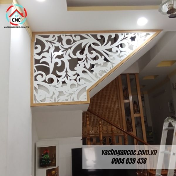 Vách ngăn cầu thang có bàn thờ thường được làm từ gỗ hoặc các vật liệu khác có tính thẩm mỹ cao .Bàn thờ có thể được trang trí với các họa tiết hoa văn, chữ cái hay hình ảnh tôn giáo tùy thuộc vào sở thích và tôn giáo của gia chủ.