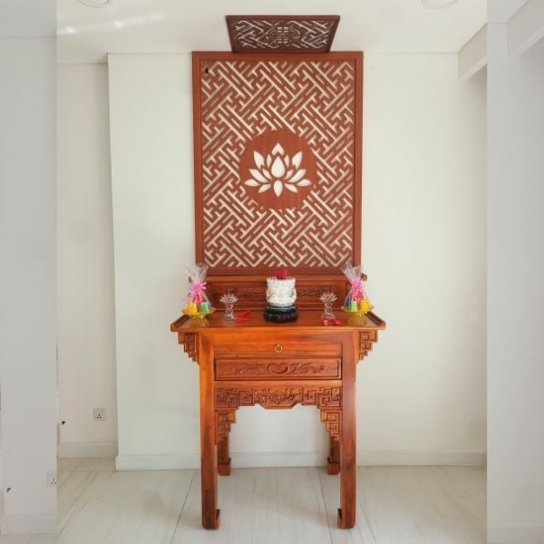 Che chắn và bảo vệ: Vách ngăn gỗ trang trí cũng có tác dụng che chắn và bảo vệ các vật phẩm linh thiêng, tôn giáo được đặt trên bàn thờ khỏi ánh sáng mặt trời, bụi bẩn và các yếu tố khác.