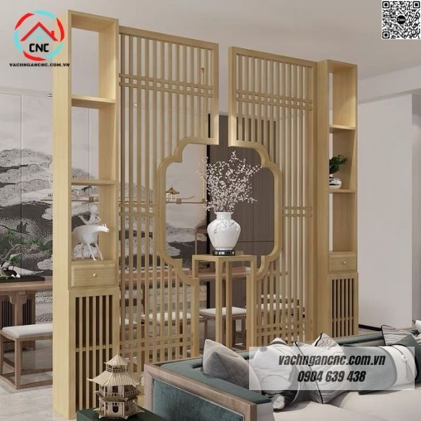 Vách ngăn tủ tivi trang trí phòng khách gỗ -BK194