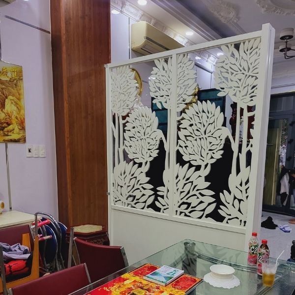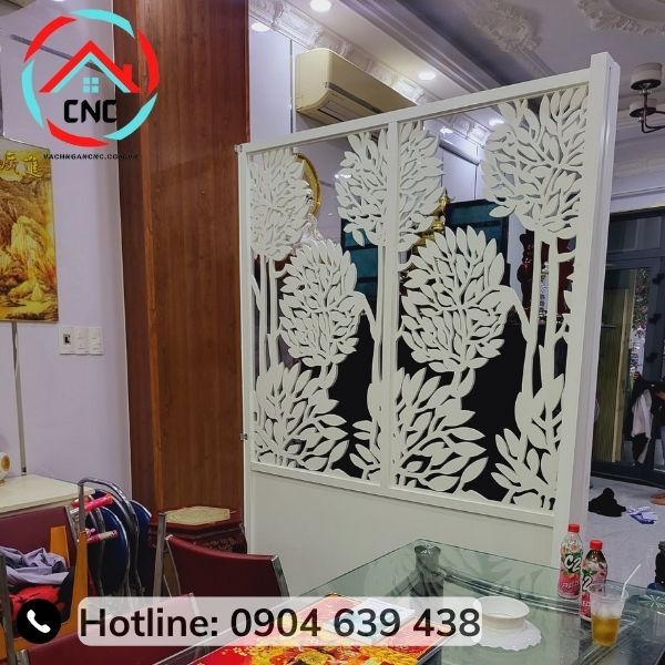 Vách tivi hoa văn được cắt CNC rất tỉ mỉ và tinh tế. Vách tivi hoa văn thường được làm bằng gỗ tự nhiên, MDF và mang đến cho phòng khách một vẻ đẹp sang trọng và độc đáo.